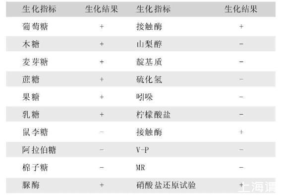 用分離菌純培養物進行下列試驗:硝酸鹽還原、尿素酶、靛基質、MR、VP試驗、葡萄糖、乳糖、硫化氫、接觸酶、水楊苷、麥芽糖、蔗糖、甘露醇、果糖、木糖、檸檬酸鹽、山梨醇等糖發酵試驗[3]。接種前在發酵管中加入2μL的1%的NAD。
