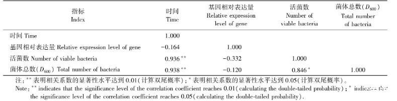 表3 對數期活菌數、菌體總數、ppia-l20基因相對表達情況相關性分析