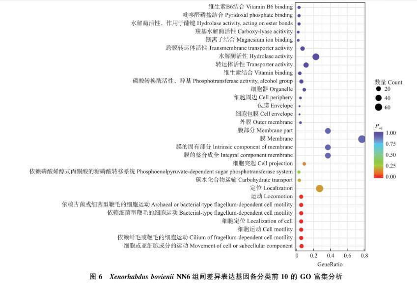 圖6 Xenorhabdus bovienii NN6組間差異表達基因各分類前10的GO富集分析