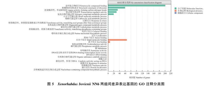 圖5 Xenorhabdus bovienii NN6兩組間差異表達基因的GO注釋分類圖