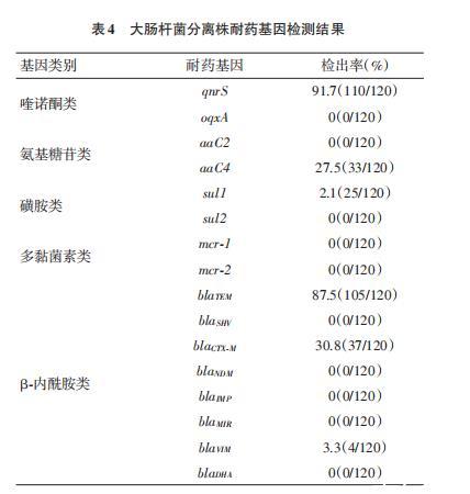 120株大腸桿菌分離株的耐藥基因檢測統計結果如下: