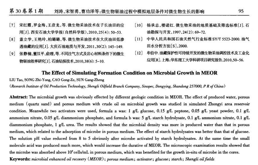 微生物驅油過程中模擬地層條件對微生物生長的影響