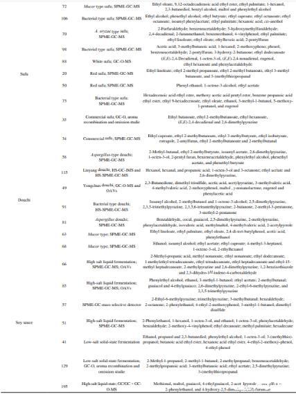 研究表明,發(fā)酵豆制品其中獨特的氣味和風味口感與各種微生物在發(fā)酵過程中產(chǎn)生的酶作用下分解得到的糖、有機酸、脂肪酸、氨基酸和肽密切相關。發(fā)酵大豆食品中的揮發(fā)性化合物極其復雜,因為不同的原料、加工方法和菌株可以產(chǎn)生多種風味物質。而且,傳統(tǒng)的豆制品發(fā)酵一般采用自然發(fā)酵的方式,依靠自然環(huán)境中的優(yōu)勢菌種來實現(xiàn)發(fā)酵,發(fā)酵系統(tǒng)中微生物種類繁多,菌群結構演變復雜,代謝途徑多樣。因此,弄清相關微生物在發(fā)酵過程中的作用及其與風味的關系,對于發(fā)掘潛在的風味功能菌群,控制發(fā)酵豆制品的風味品質具有重要意義。