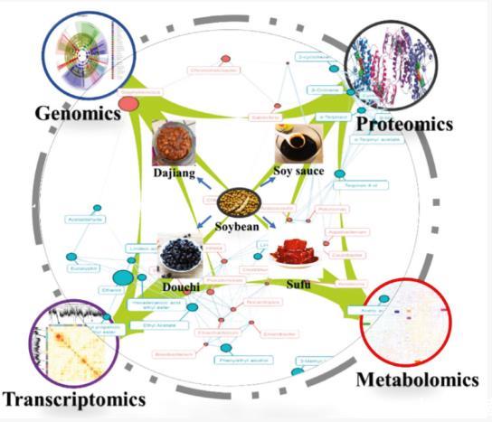 發(fā)酵豆制品的香氣特征高度依賴于發(fā)酵系統(tǒng)中微生物群產(chǎn)生的初級和次級代謝產(chǎn)物。盡管發(fā)酵過程中產(chǎn)生的微生物結構和代謝物化合物已經(jīng)通過高通量測序技術和質譜以及NMR進行了分析,但發(fā)酵系統(tǒng)中的核心微生物及其與主要風味相關代謝物的相關性仍有待闡明,并且大多數(shù)微生物通常很難評估它們是否實際參與了發(fā)酵過程,一些存在濃度非常低微生物很難確定它們是否有助于發(fā)酵豆制品獨特風味的形成。培養(yǎng)非依賴性和多組學技術的發(fā)展為表征發(fā)酵過程中微生物群落及其在風味形成中的作用提供了新的視角。此外,可以通過使用多組學技術揭示導致特定香氣形成的生物學途徑。