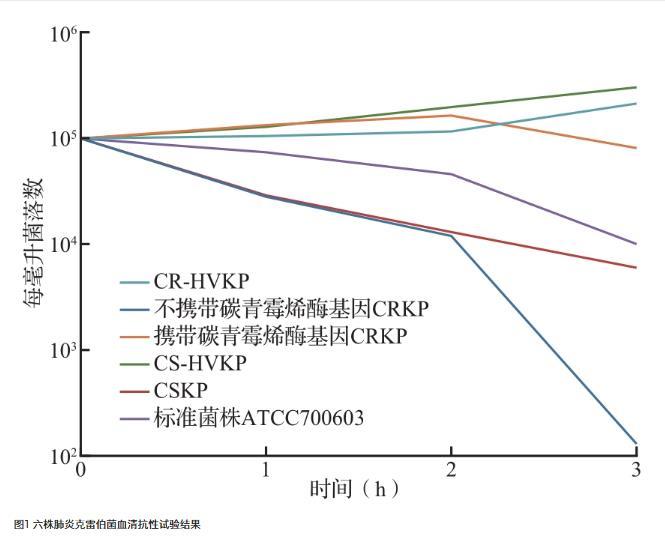 圖1六株肺炎克雷伯菌血清抗性試驗結果