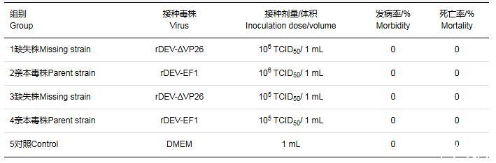 表2不同劑量rDEV-ΔVP26免疫鴨對鴨子的安全性試驗
