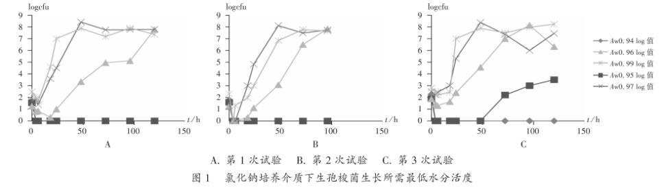 2.1氯化鈉培養介質下生孢梭菌所需最低Aw