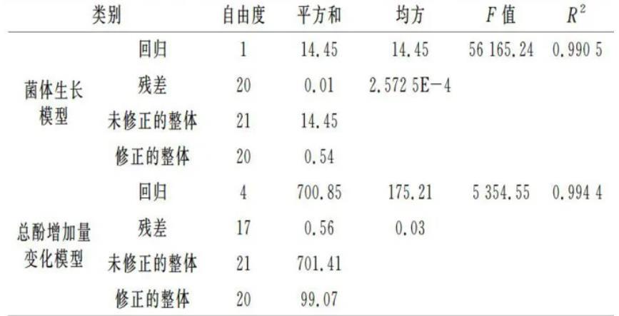 表2紅棗汁發酵動力學模型方差分析