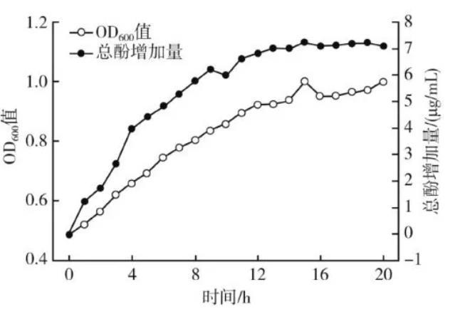 2.4.1菌體生長和總酚含量變化動力學曲線