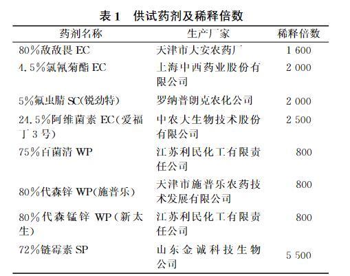 表1供試藥劑及稀釋倍數(shù)