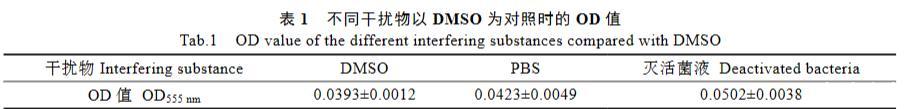 表1不同干擾物以DMSO為對照時的OD值