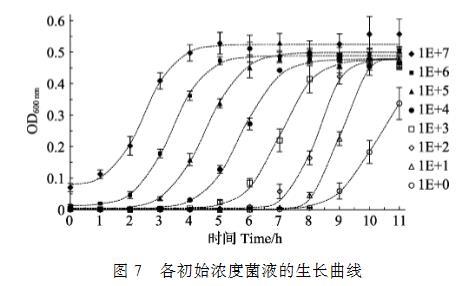 圖7各初始濃度菌液的生長曲線