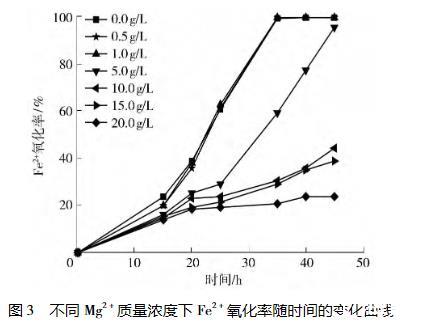 2.3 Mg2?質量濃度對體系Fe2?氧化率的影響