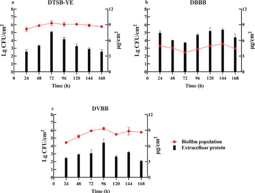病原生物的生物膜發育在某些食源性疾病中起著關鍵作用。單核細胞增生李斯特菌,特別是序列87型(ST87),在中國已被廣泛發現。本研究旨在監測食物分離的單核細胞增生李斯特菌株ST87在不同營養條件下生物膜形成的動態過程。結果表明,該菌株在營養豐富和營養有限的條件下都能始終表現出較高的活細胞計數。通過細胞計數,我們發現單核細胞增生李斯特菌ST87能夠在各種營養環境中形成生物膜,包括牛肉汁和蔬菜汁,將水平維持在2 Log10 CFU/cm以上2.值得注意的是,在營養有限的條件下,生物膜的形成速度加快,營養有限的蔬菜汁下的細胞計數明顯高于營養豐富的蔬菜汁下的細胞計數。對細胞外聚合物物質(EPS)組成的分析顯示,生物膜內的活細胞計數和細胞外蛋白變異之間存在一致的模式。此外,對培養基中營養成分(蛋白質、脂肪、總糖、灰分和pH值)的評估揭示了細胞外物質與pH值之間的正相關,但與其他營養成分之間存在負相關。