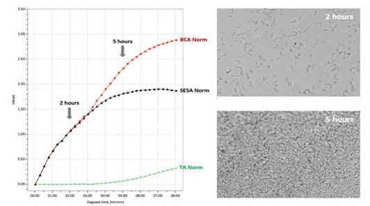 軟件優化的算法能監控生長和生長抑制,BCA算法的靈敏度大約是OD算法的250倍,它將揭示潛在的初始微生物反應。