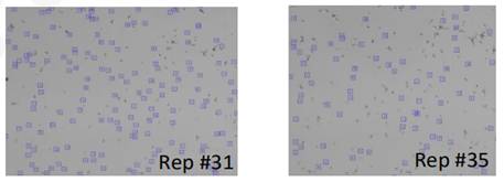 每20分鐘重復一次,共找到464個對象。未萌發孢子數,#31:275個,#35:180個,#38:125個,#40:105個。
